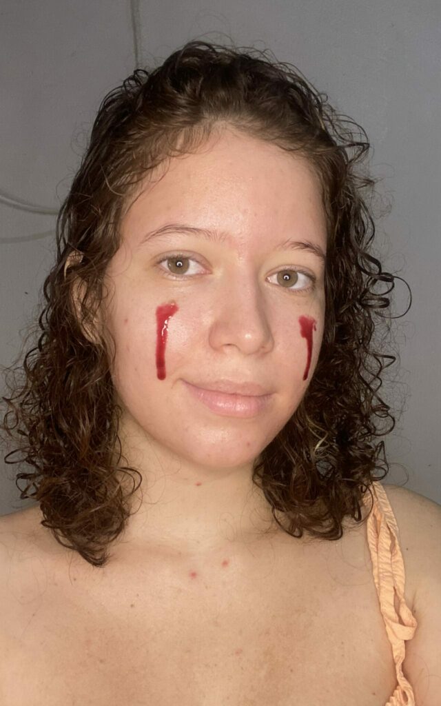 A textura desse produto não é tão líquido, ele tem uma textura consistente e uma cor bem vermelha que lembra sangue.